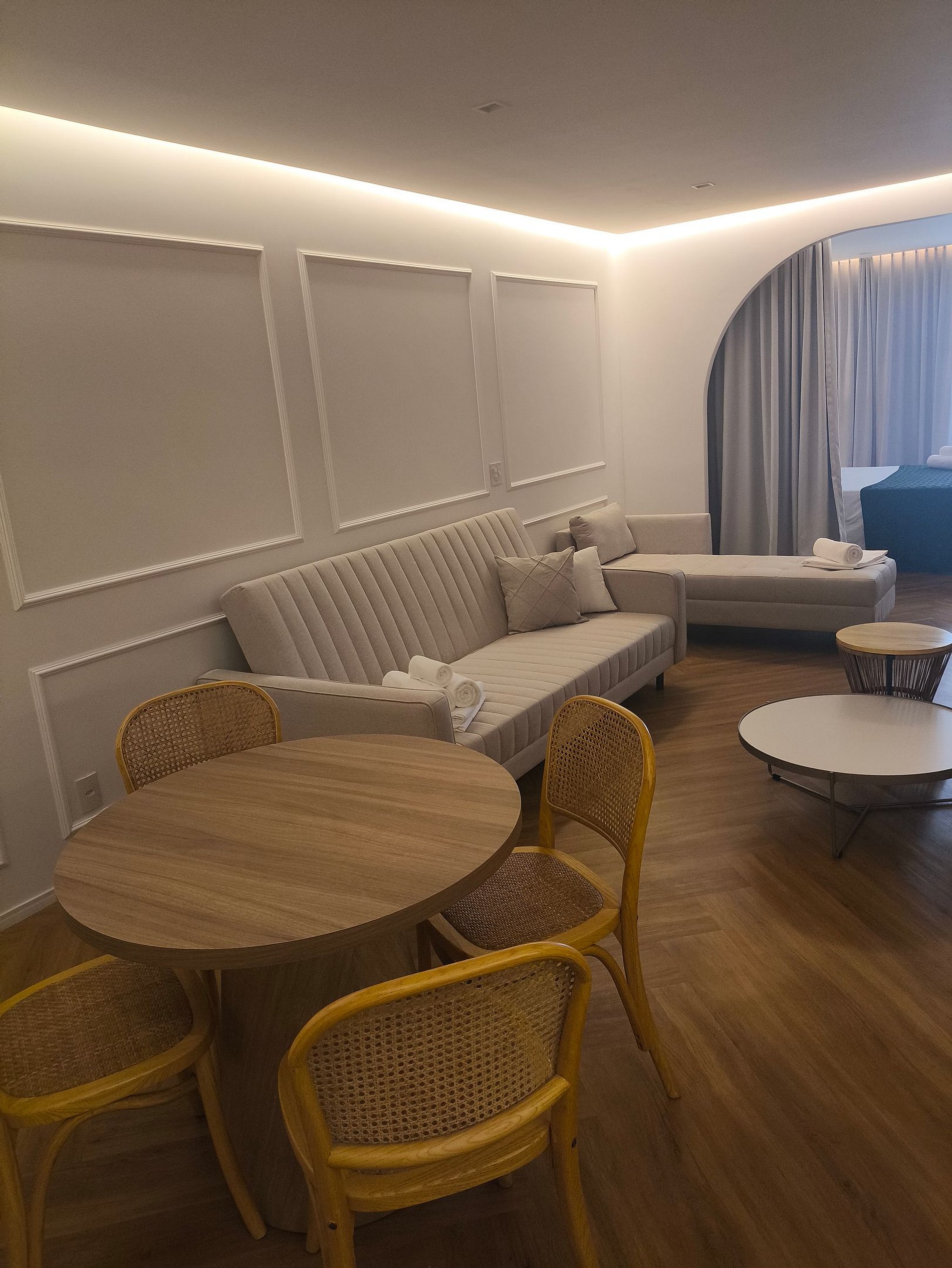 The apartment has a super comfortable living room to make you feel at home. It also has a compact kitchen with a cooktop, microwave, electric kettle, etc., with all the convenience you need to prepare everything from breakfast to a quick meal. And after a busy day, there's nothing like a cozy bedroom for a peaceful sleep. On the balcony, you can enjoy the landscape and the unique climate of Búzios.