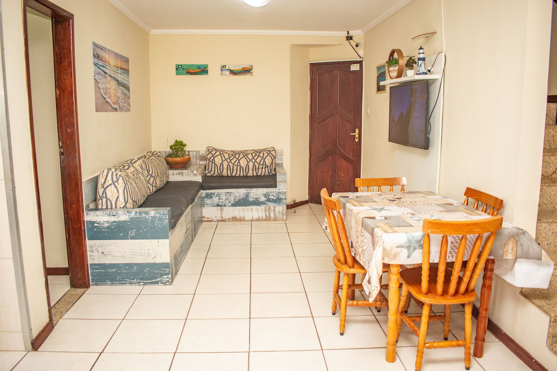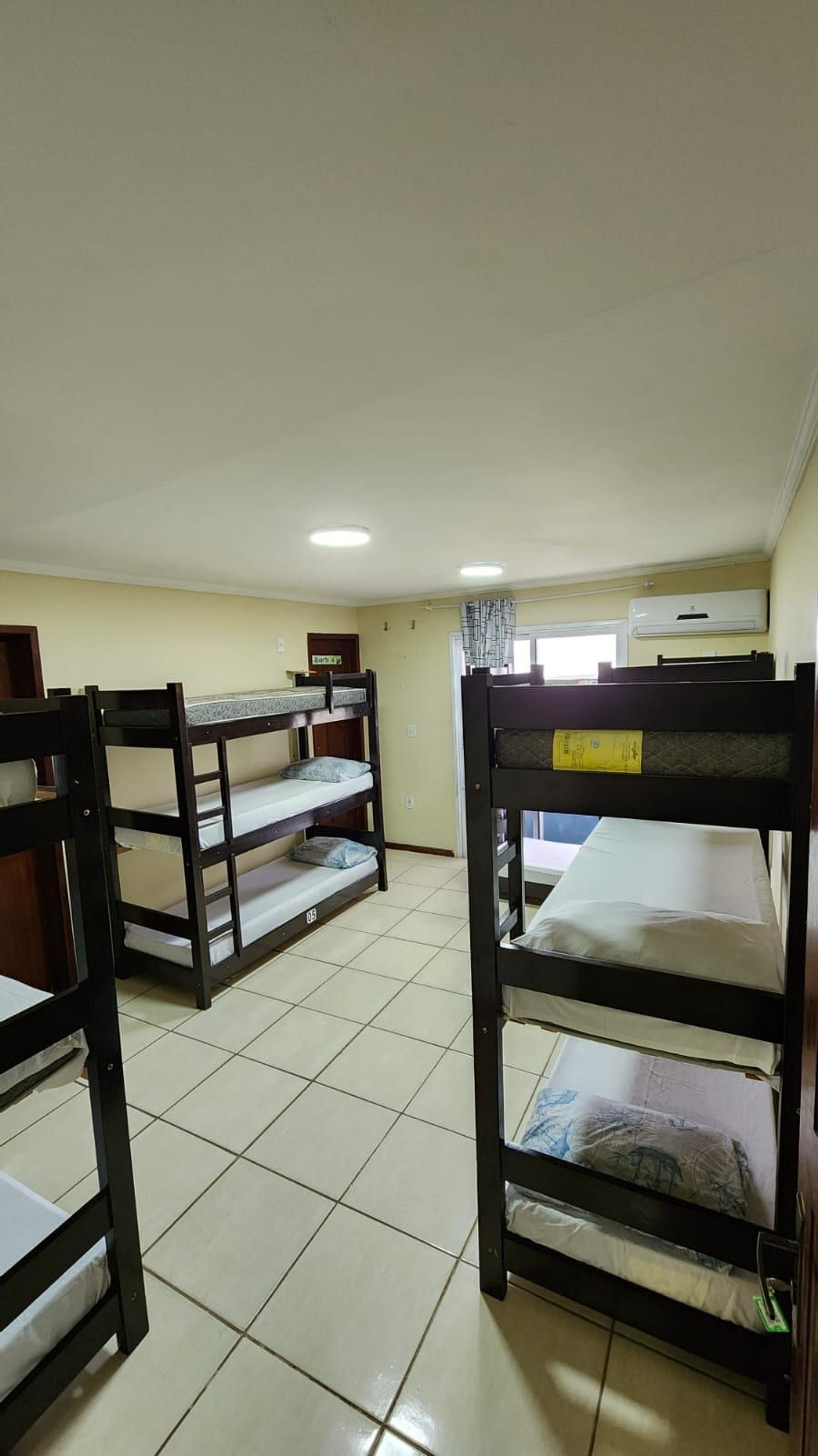 Suíte com ar condicionado e sacada. Internet de alta velocidade, com 5 (cinco) treliches. Ideal para grupos de amigos que viajam juntos e querem curtir as belezas de Arraial do Cabo. A localização é excelente com todos os tipos de comércio ao redor. Supermercado, padaria, lojas, pizzarias, restaurantes, conveniências e bares. Fique hospedado a alguns passos do pôr -do-sol mais lindo do Brasil.