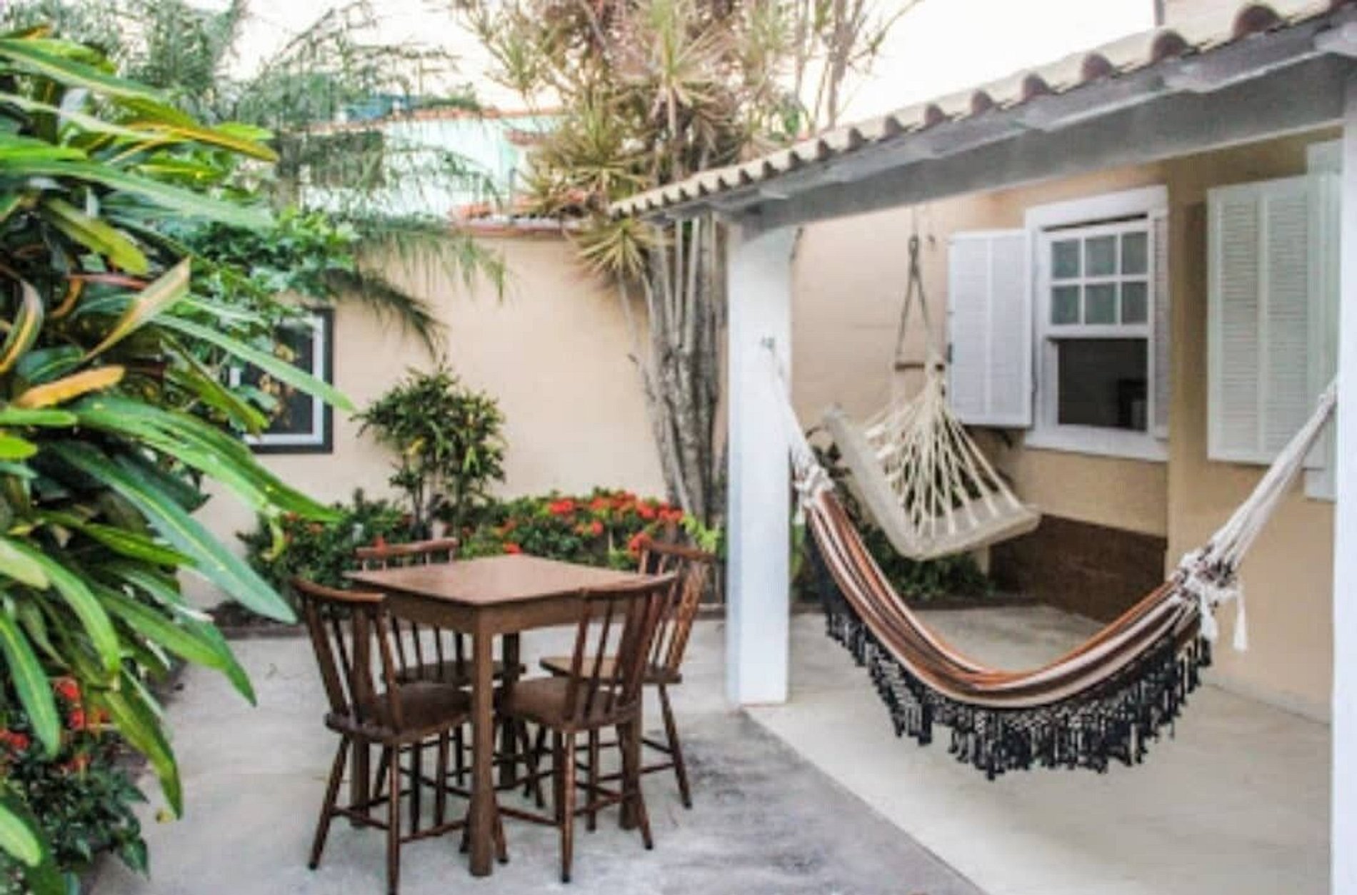 Localização excelente próxima a supermercado, farmácia, pizzarias e praias. Tem um jardim lindo na frente e uma varanda coberta bem aprazível com redes pra relaxar. Churrasqueira no quintal e mesas e cadeiras de plástico para fazer aquele churrasco em grupo.