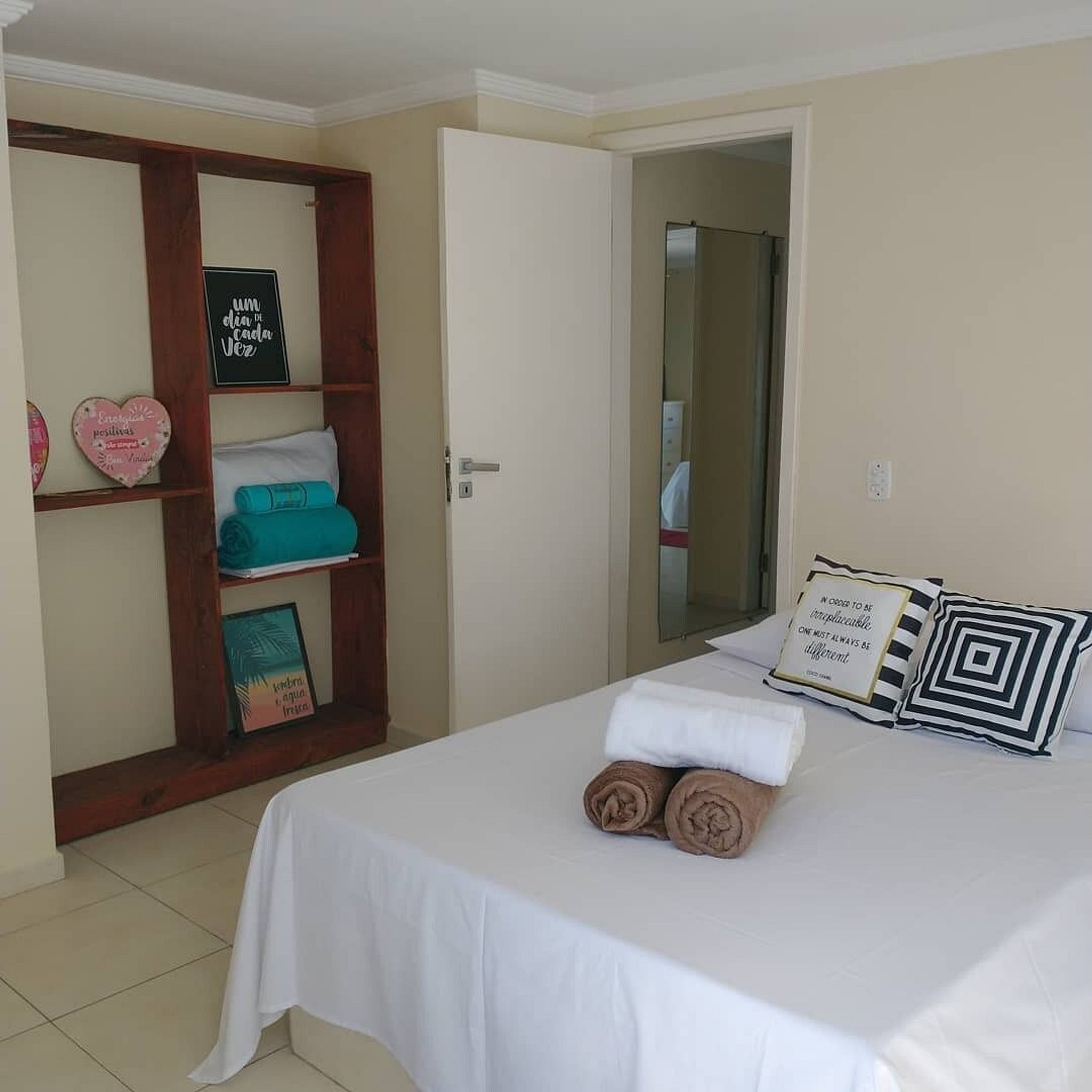 Secador de cabelo, espelho de corpo inteiro e de maquiagem, duas geladeiras e um freezer. Fornecemos roupas de cama.